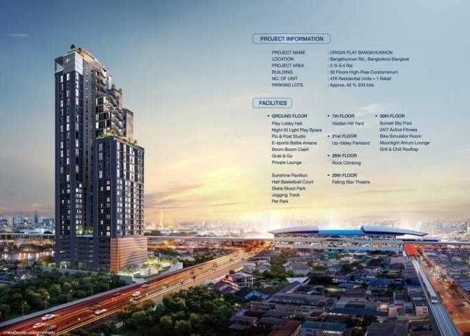 ขายดาวน์ขาดทุนคอนโด Origin Play บางขุนนท์ ทริปเปิ้ล สเตชั่น