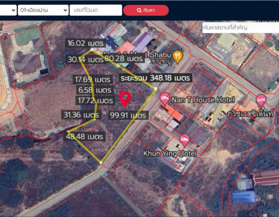 ขายที่ดินตัดแบ่งขายได้ 3 ไร่ 1 งาน 59.7 ตารางวา น่าน ที่ตั้ง :