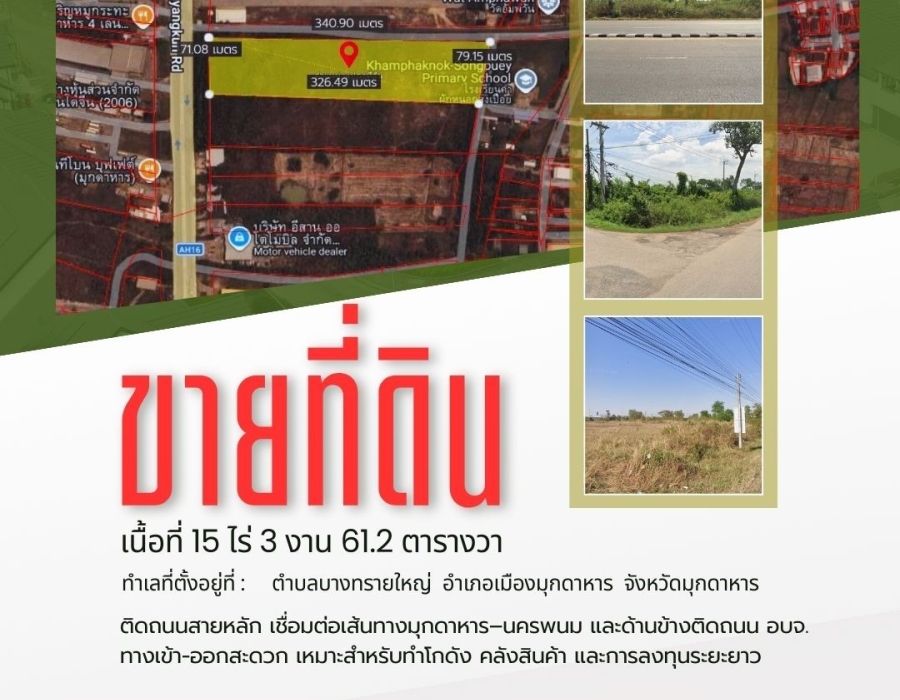 ขายที่ดินทำเลสวย 15 ไร่ 3 งาน 61.2 ตารางวา จังหวัดมุกดาหาร