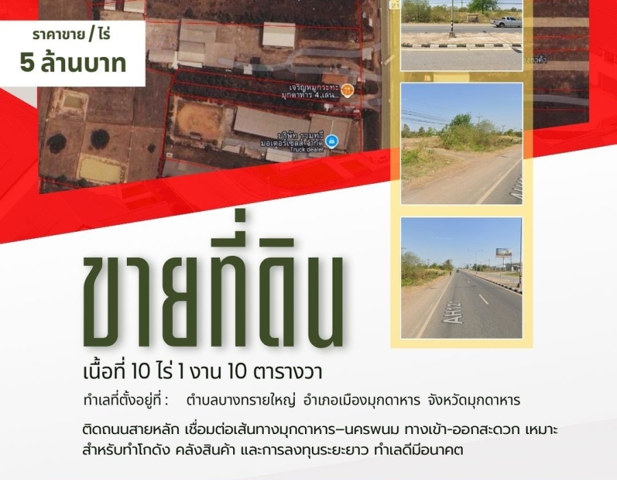 ขายที่ดิน10 ไร่ 1 งาน 10 ตารางวาท ที่ทำเลดีจังหวัดมุกดาหาร
